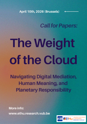 We are pleased to announce this call for papers for the annual ETHU Research Day on April 10th, 2026. The ETHU Research Day ‘The Weight of the Cloud: Navigating Digital Mediation, Human Meaning, and Planetary Responsibility’ will critically explore the implications of contemporary cloud-based technologies by bringing together in a complementary way philosophical, ethical, ecological, and technological perspectives.